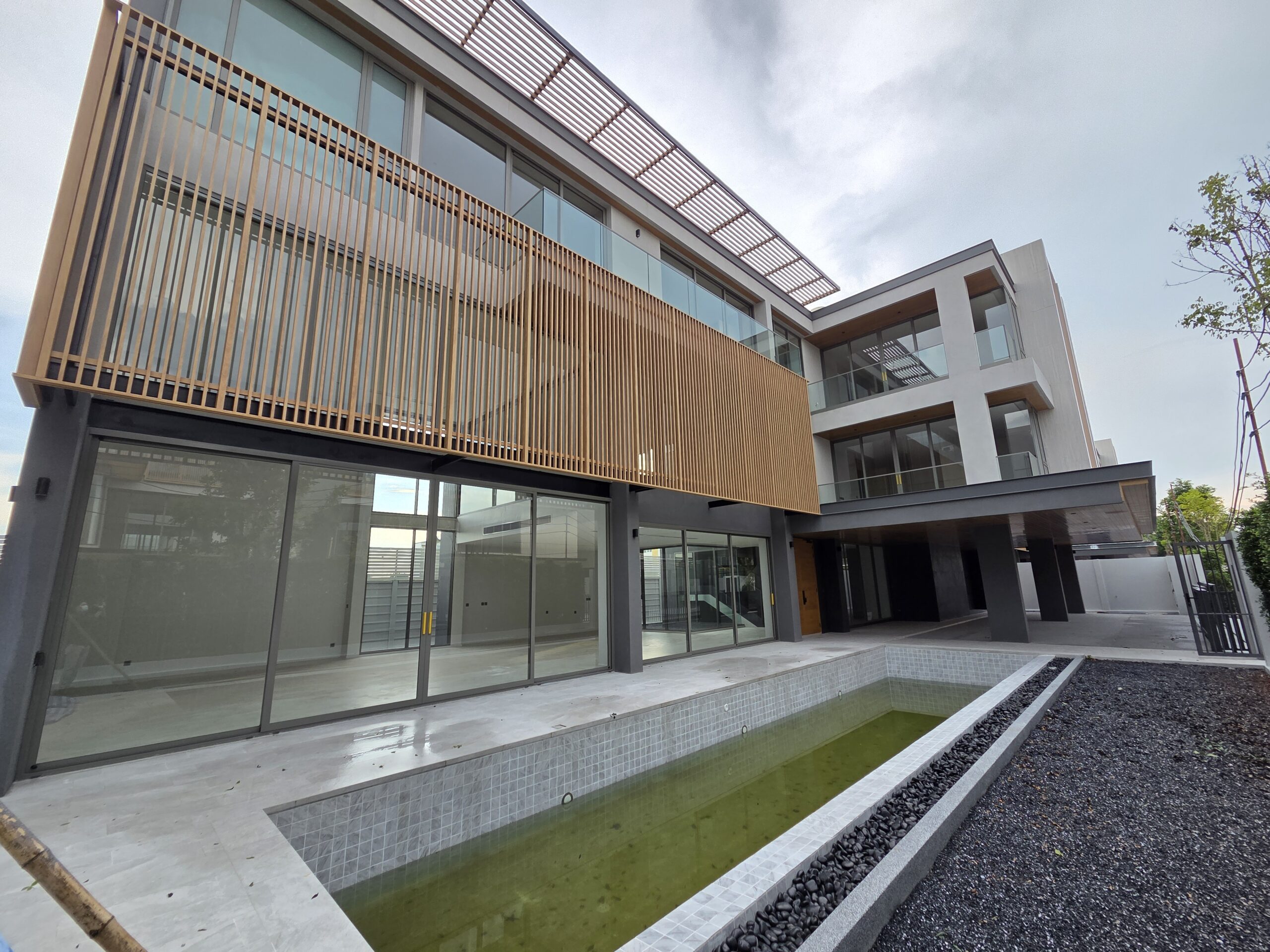 We are responsible for the development of 5 luxury XL-type residences, each 880 sq.m., featuring 5 bedrooms, 6 bathrooms, 5 car parking spaces, 2 nanny rooms, and a private pool.